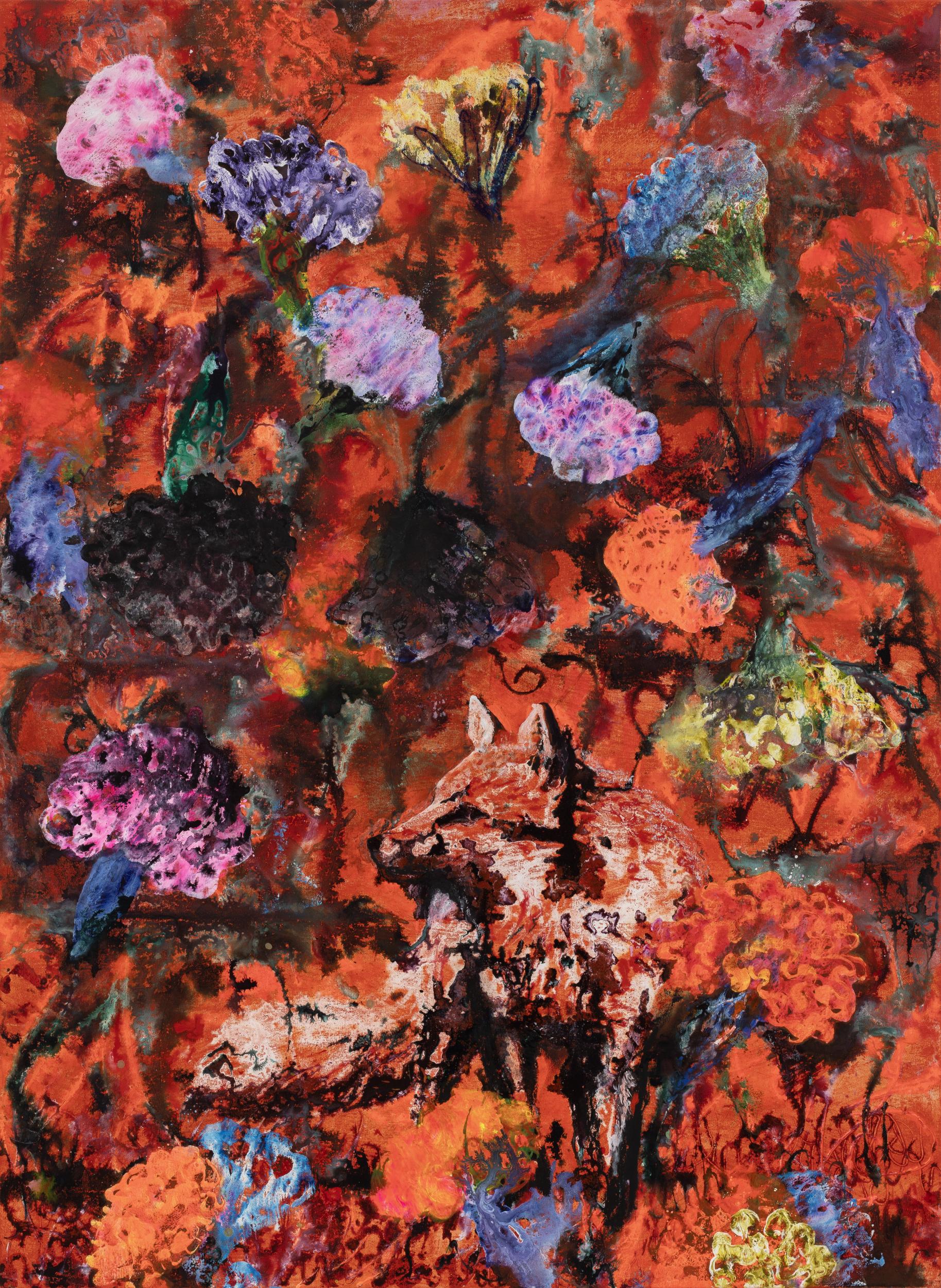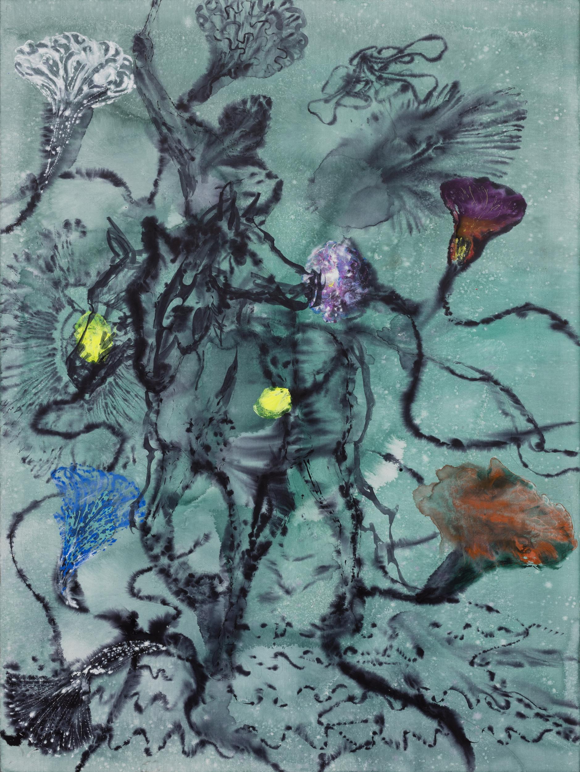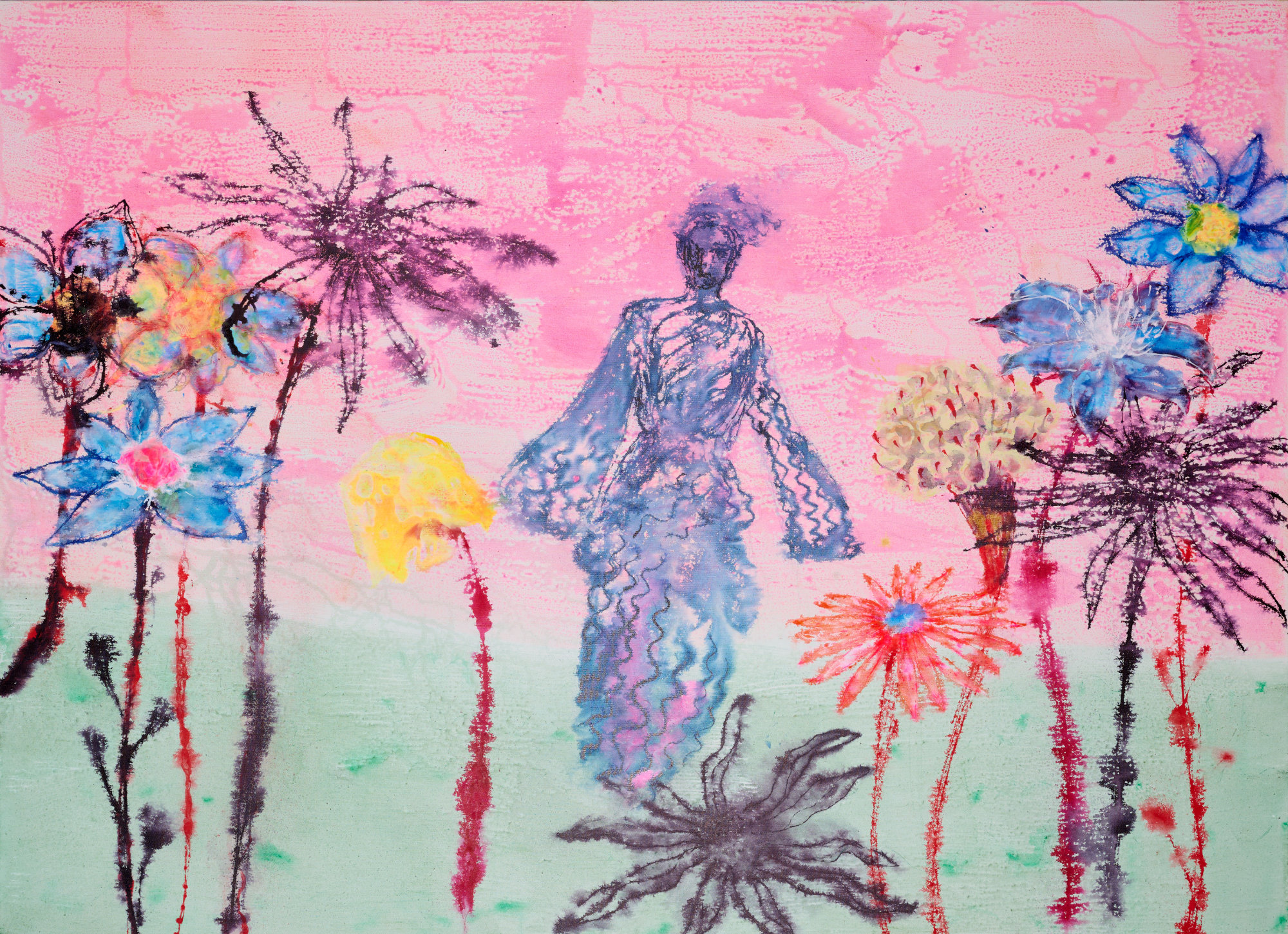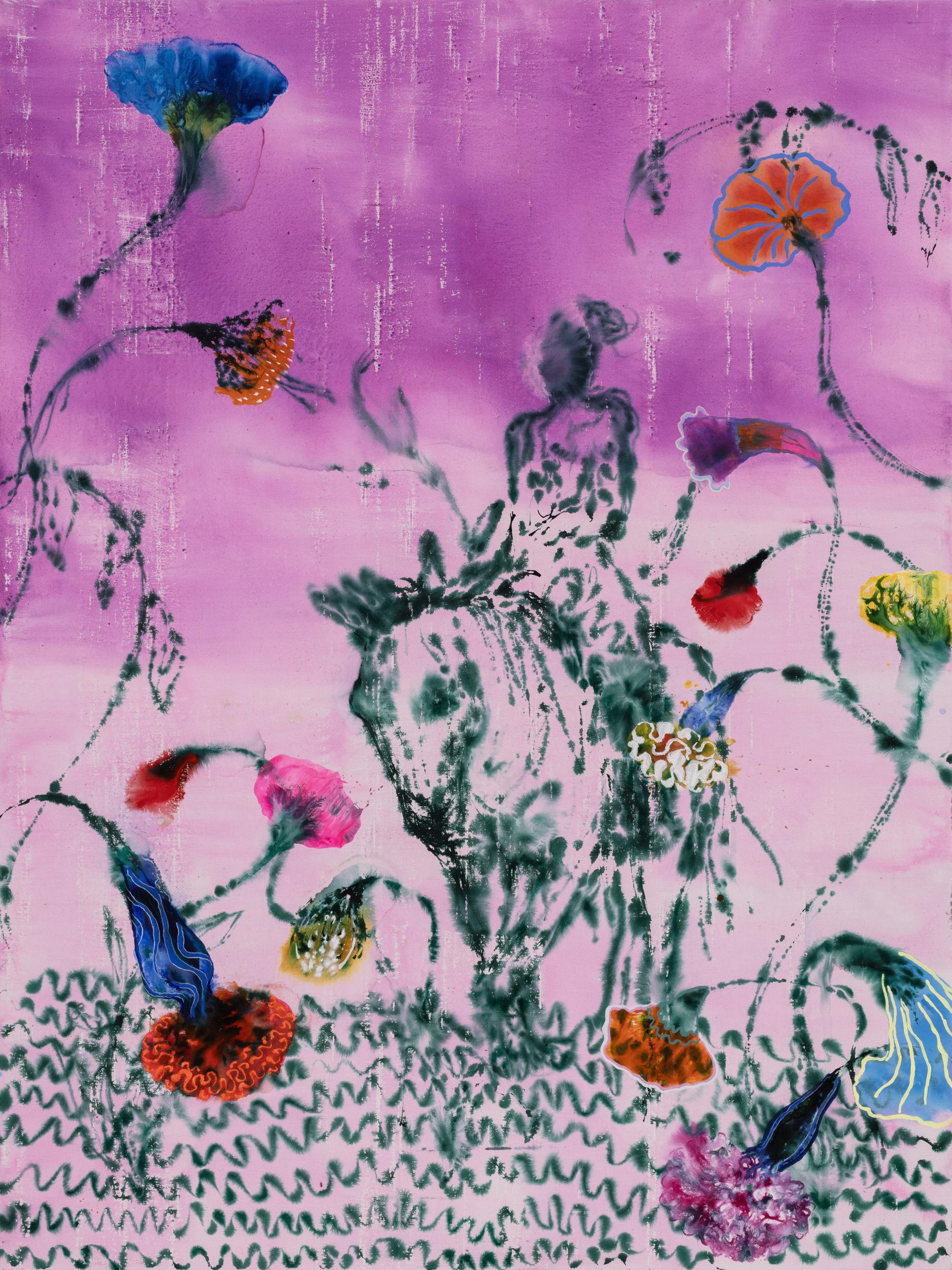 wild flowers, 2025, tempera and acrylic ink on canvas, 200 x 140 cm