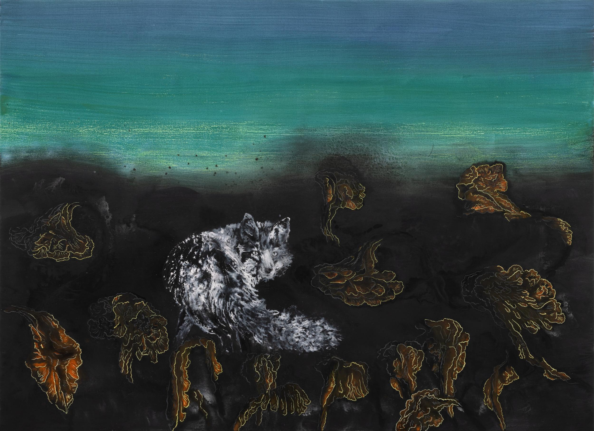 untitled, 2025, ink and acrylic ink on canvas, 110 x 150 cm