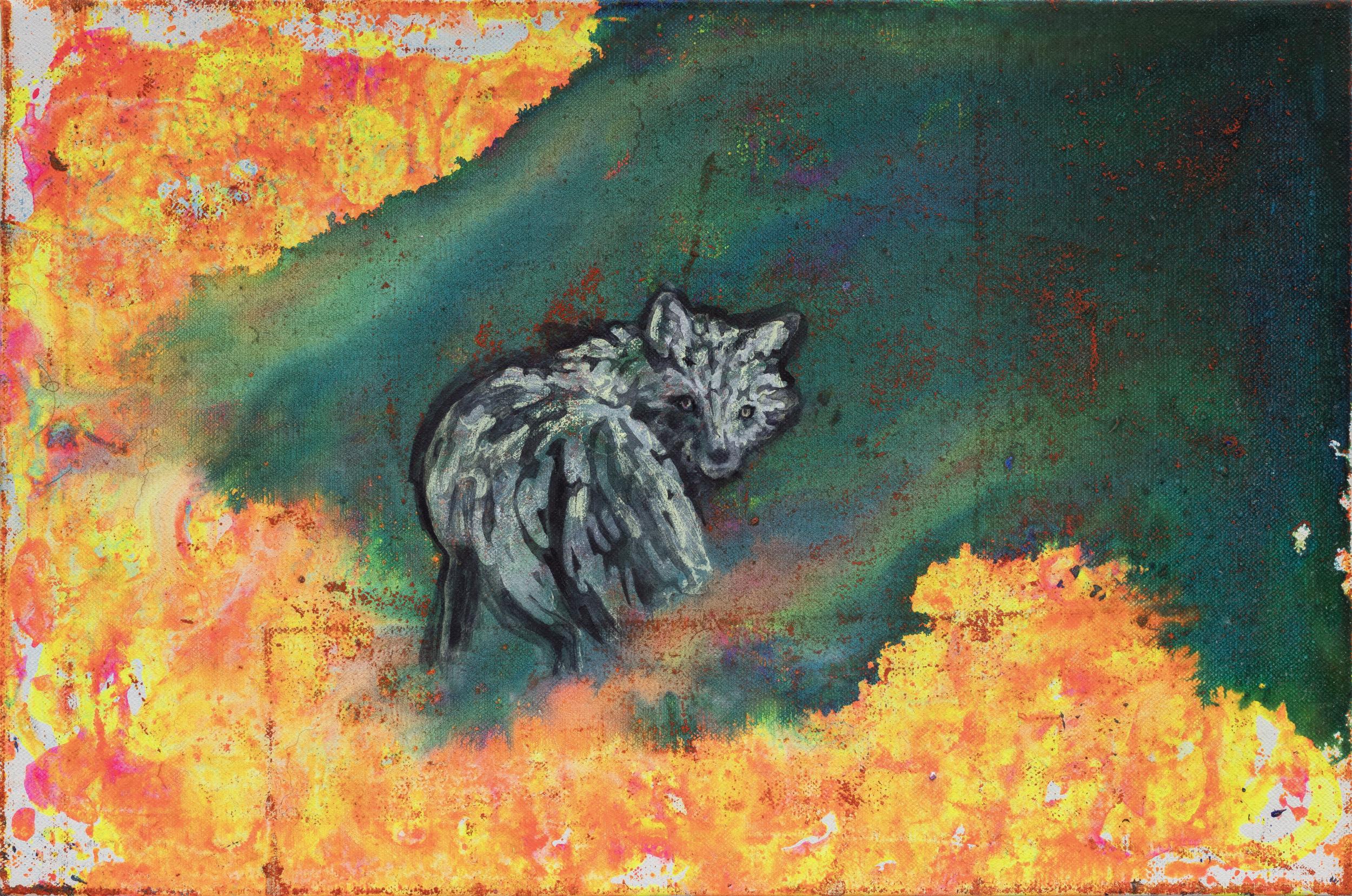die hard, 2025, acrylic ink on canvas, 30 x 45 cm