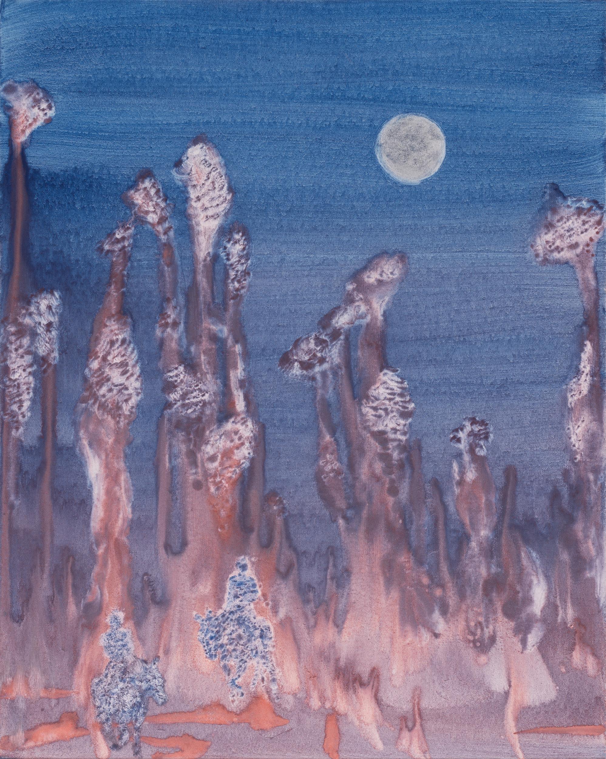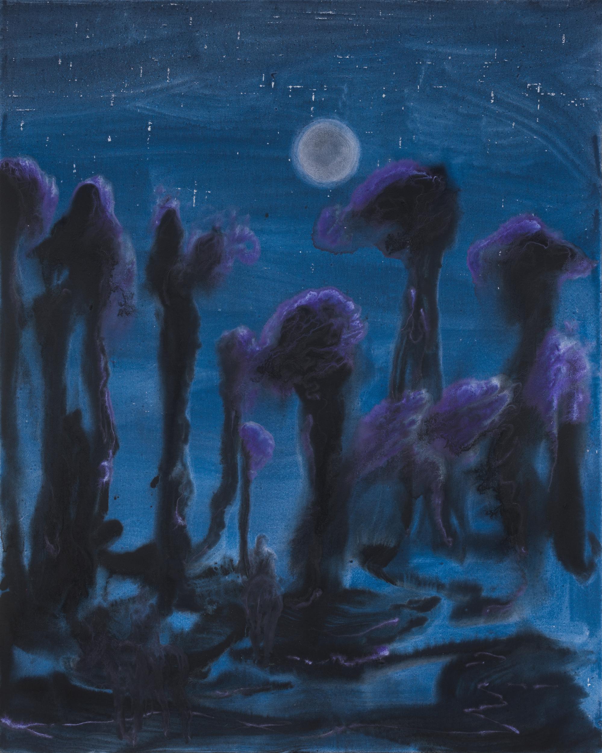 A forest for Ernst, 2025, tempera and acrylic ink on canvas, 100 x 80 cm