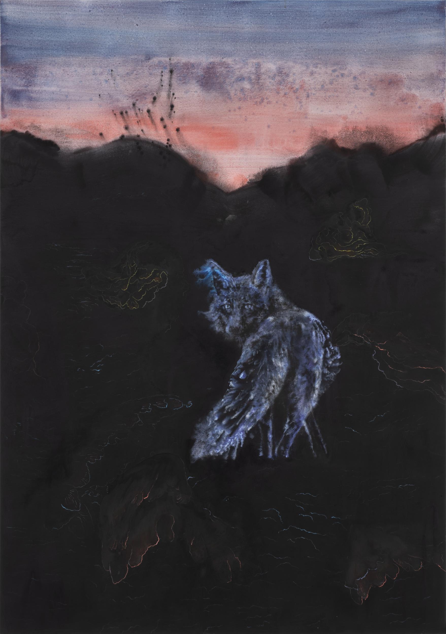 ancient evening [for Vallotton], 2025, tempera and acrylic ink on canvas, 145 x 200 cm