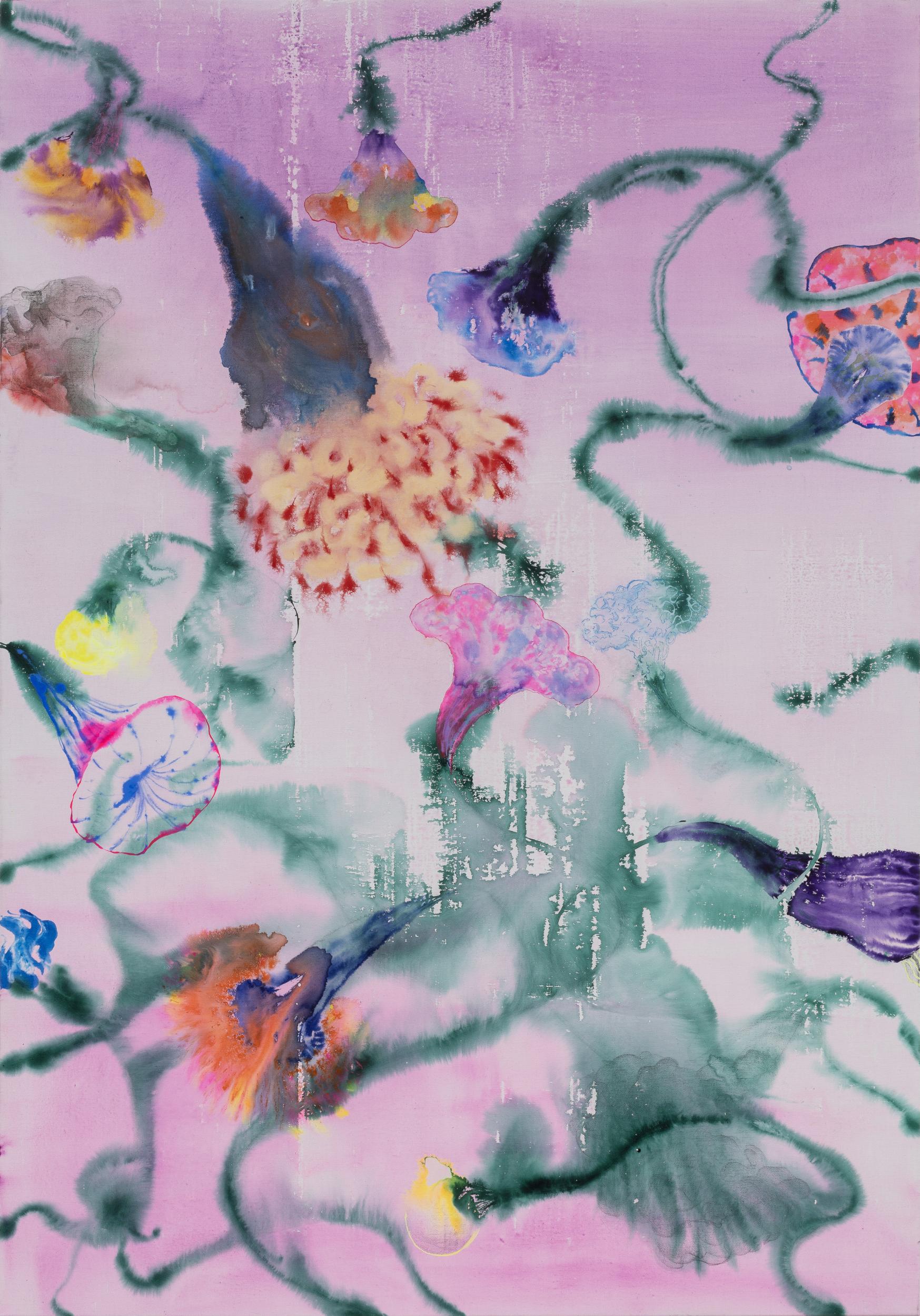 floral oblivion VIII, 2025, tempera and acrylic ink on canvas, 200 x 170 cm